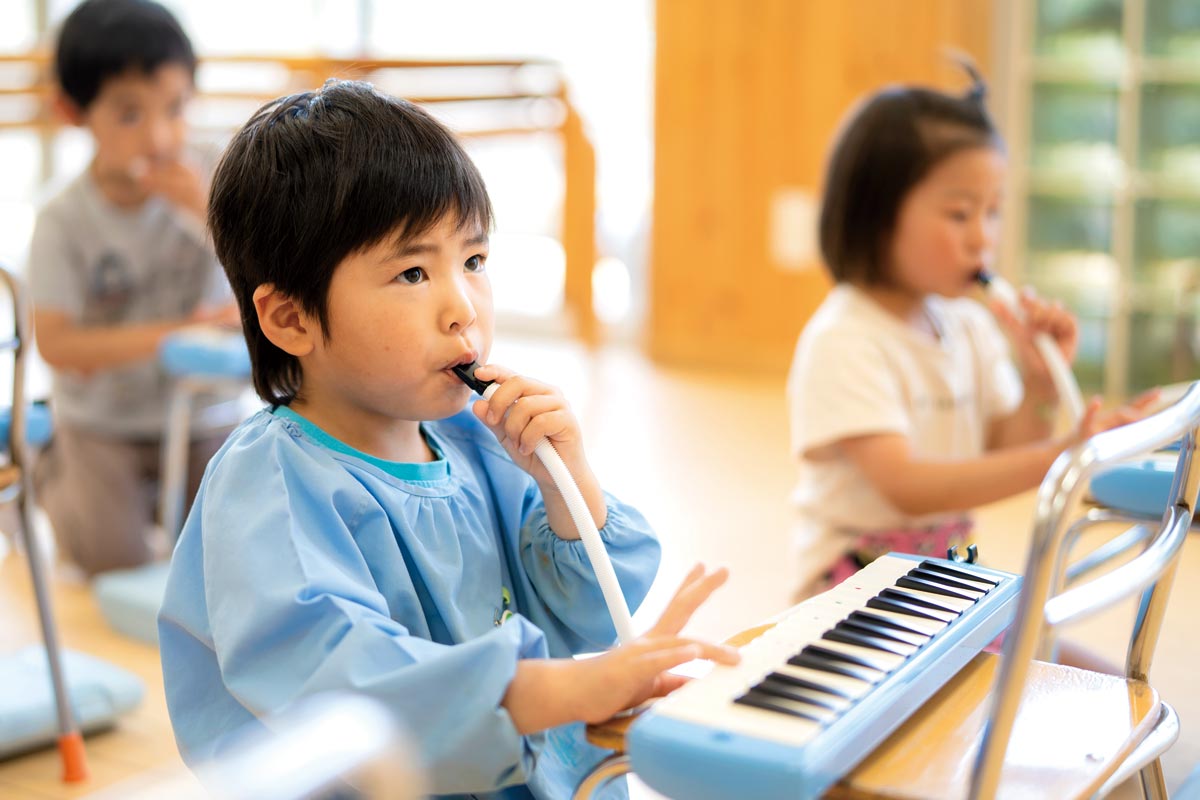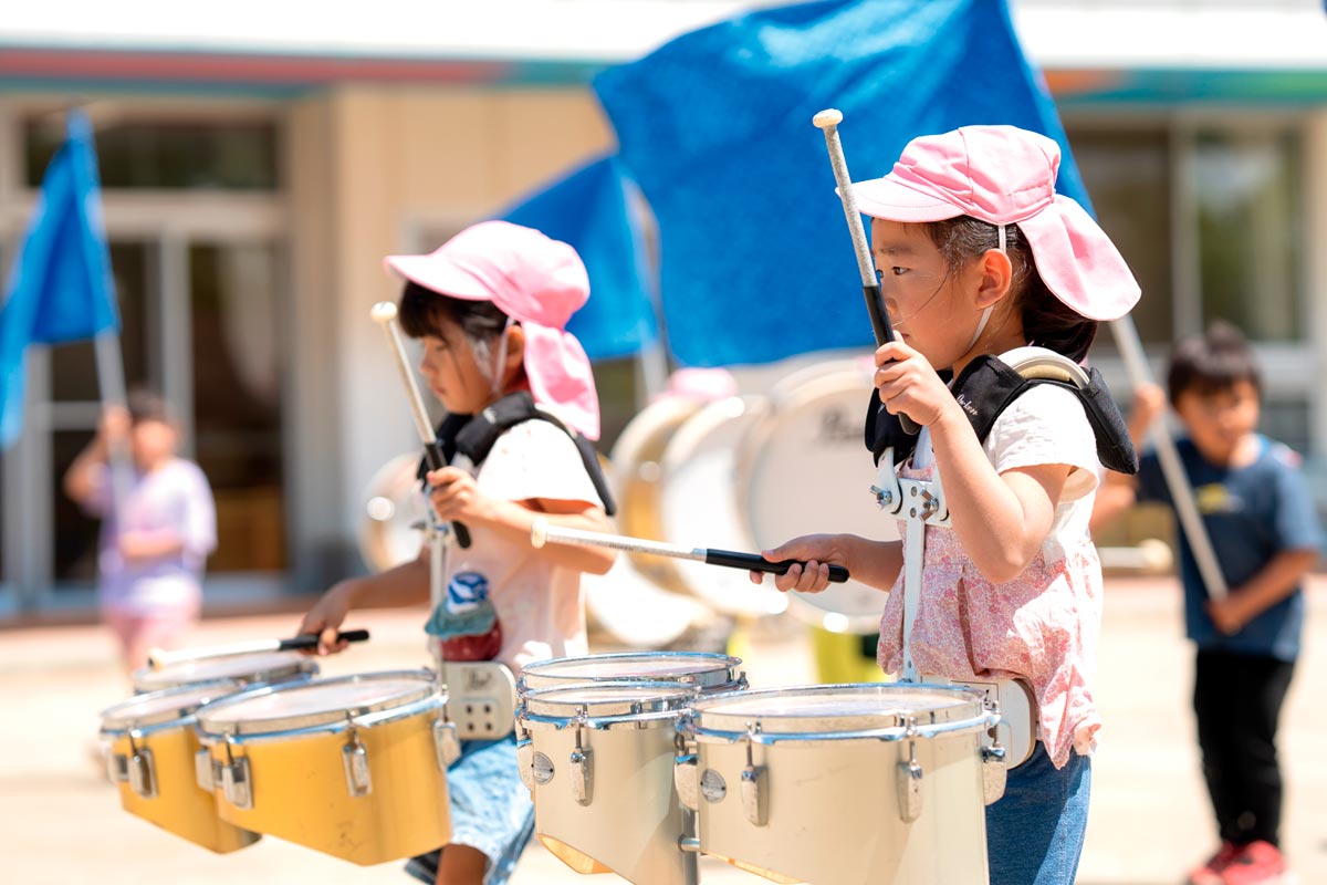 音楽の持つリズム・メロディー・ハーモニーを体で会得し、「がんばる力」「みんなと協力する力」を身に付けます。